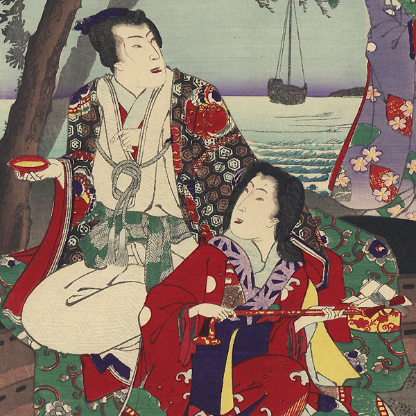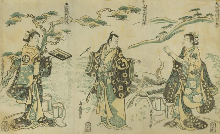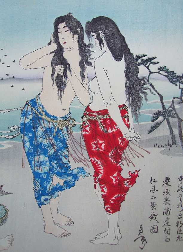 Поэт Аривара-но Нарихира и сестры Мурасамэ и Мацукадзэ