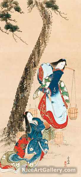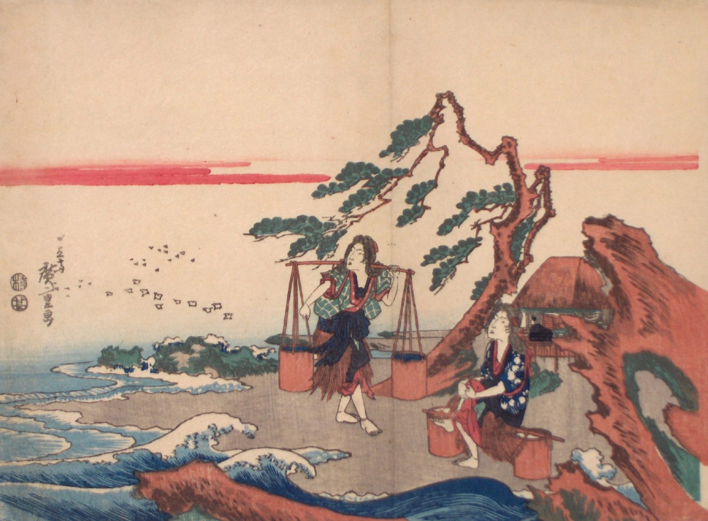 Сестры Мурасамэ и Мацукадзэ добывают соль. Художник Хиросигэ