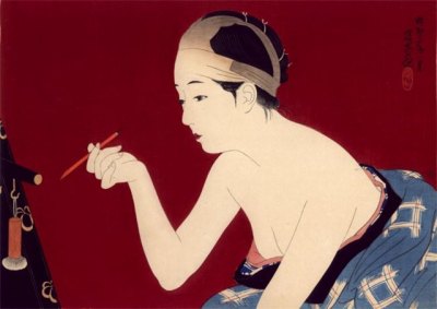 С проституткой мужчина чувствует себя самцом, с гейшей — самураем. Кроткая, податливая и в то же время полная изобретательности и предупредительности, гейша является непревзойденной в искусстве возвысить мужчину. Для этого она должна была выглядеть соответственно канонам красоты. Вы никогда не задумывались об их макияже? Набор маленьких горшочков с разными снадобьями, разнообразные кисти и яркие краски - все это завораживало европейцев, впервые столкнувшихся с макияжем гейш. Белила оширои (oshiroi), совершенно закрывающие лицо гейши, используются с древнейших времен. Обычай белить лицо пришел, как водится, из Китая в эпоху Хейан. Свинцовые белила, использовавшиеся как основа для этой краски, давали эффект совершенно гладкого, почти маскообразного лица. Позже свинцовые белила было заменены на более безопасное вещество. Гейша наносила белую краску не только на лицо, шею, плечи, грудь и верхнюю часть спины, но и на руки до локтя. После завершения процедуры основа слегка припудривалась, чтобы убрать возможный блеск.