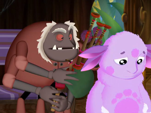 Пауку Шнюк его любимая бабушка прислала подарок — волынку. Паук с удовольствием начинает играть на новом инструменте.