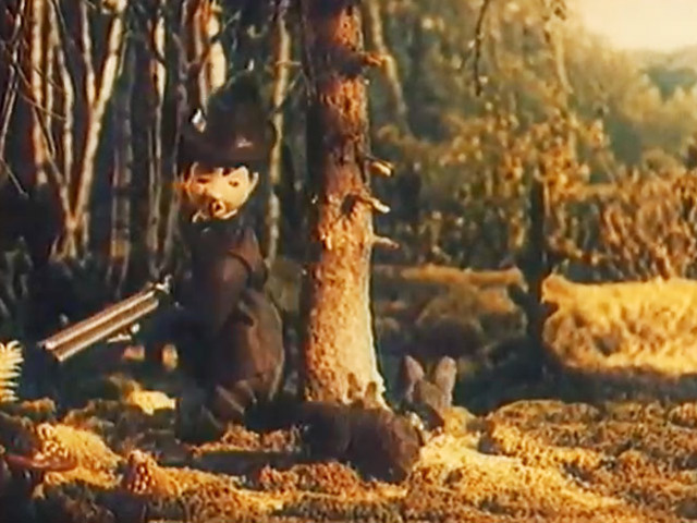 Фильм о Карандаше и его собачке Кляксе, которые пошли на охоту.Режиссер: Е. Мигунов.