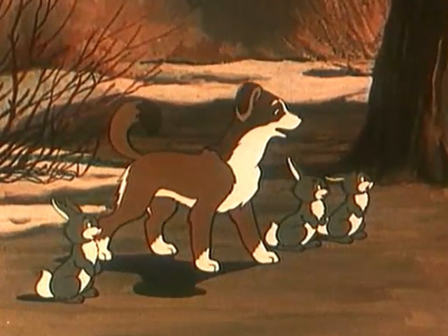 Зимой погибает мать щенка Крепыша. Осиротевшего, полузамерзшего крепыша приютила Зайчиха.Режиссеры: А. Амальрик, В. Полковников.