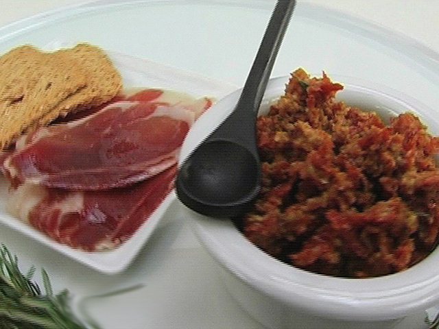 Описание материала:Вкусная закуска с помидорами.Состав:сущеные помидоры — 15-20 штук;каперсы — 2 столовых ложки;оливки — 3 столовых ложки;чеснок — 1 столовая ложка;сок половины лимона;тосты — 3 уксочка;ветчина — 3 кусочка;горчица — 1/2 столовой ложки;масло, розмарин — по вкусу.