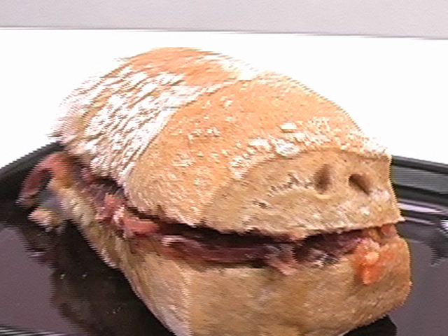 Описание материала:Прекрасный бутерброд для начала трудового дня.Состав:копченая телятина — 200 гр;заварной хлеб — 4 штуки;лимонный сок — 50 гр;чеснок — 3 зубчика;помидора — 3 штуки;оливковое масло, соль, перец — по вкусу.