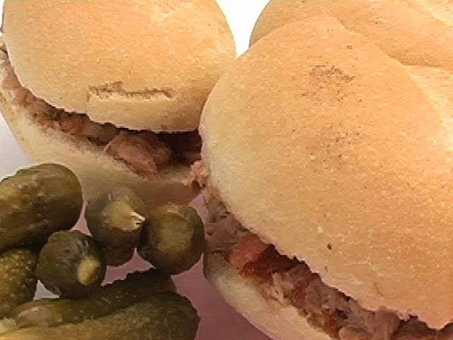 Питательные сендвичи с тунцом.Состав:булочки — 4 штуки;помидоры — 3 штуки;тунец в масле — 50 гр;лук — 3 штуки;несколько сушеных помидор;оливковое масло, уксус, соль, перец, каперсы — по вкусу.