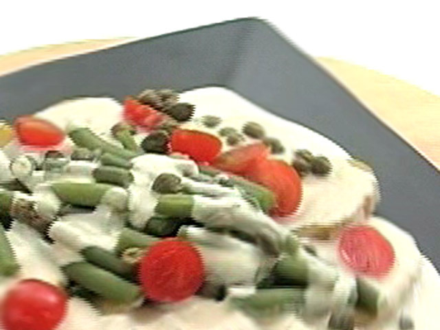 Описание материала:Рецепт картофеля с необычным соусом.Состав: фасоль — 100-150 гр;картофель — 2 штуки;сметана — 50 гр;майонез — 100 гр;белый тунец в масле;анчоусы — 2 штуки;помидоры-черри — 6 штук;каперсы — 50 гр;лимонный сок, белый перец, морская соль.