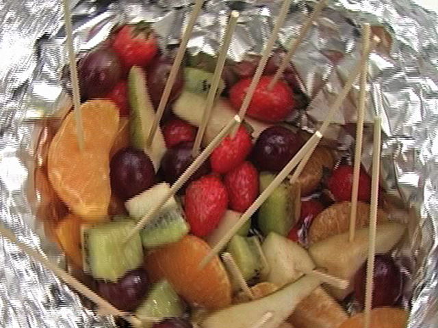 Описание материала:Фруктовый пикник в жаркий день.Состав:тросниковый сахар — 50 гр;клубника — 12 ягод;киви — 1 штука;мандарин — 1 штука;мандариновое масло — 3 столовых ложки;сухой имбирь — 1/2 столовой ложки;груши — 1/2 штуки;виноград — 12 ягод.