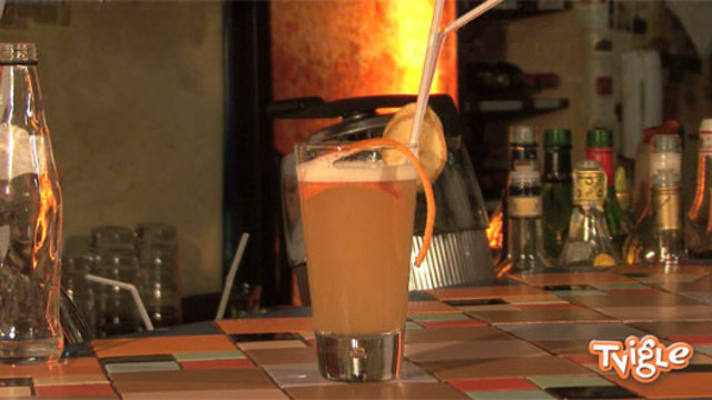 Освежающий безалкогольный коктейль «Тропикана».Состав:сок грейпфрута — 75 мл;сок яблока — 75 мл;ананасовый сок — 75 мл;тоник — 25 мл.